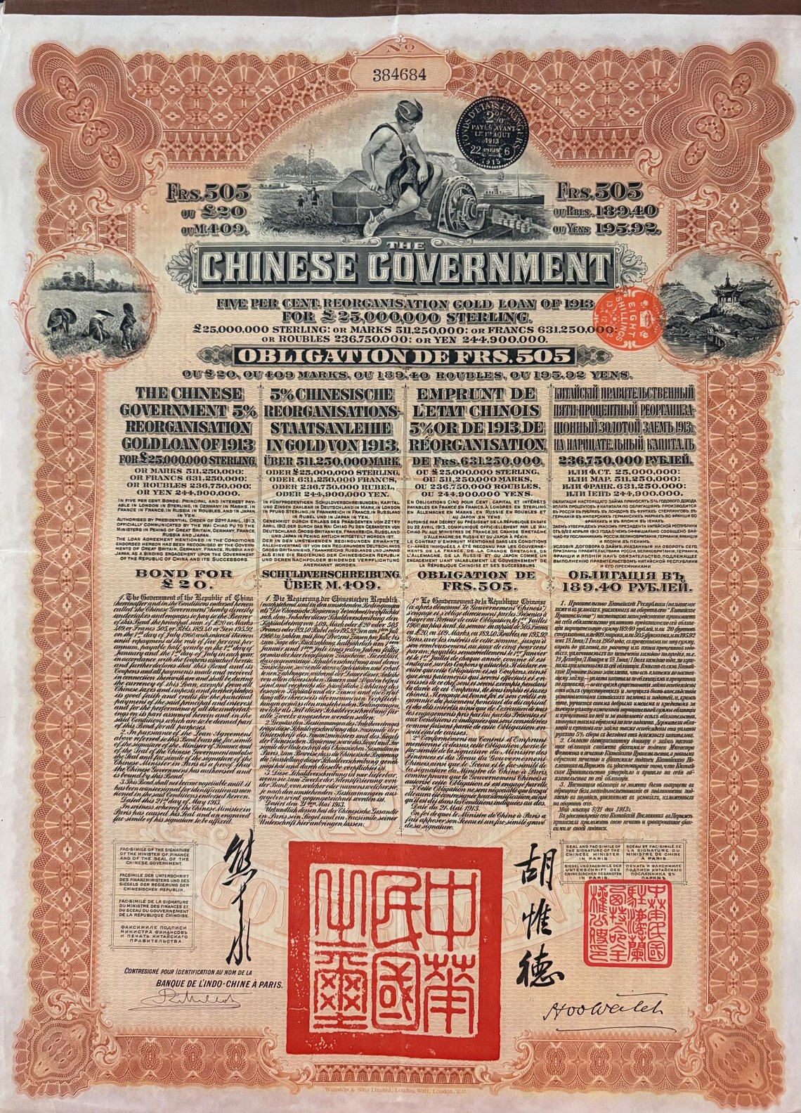Before 1912, such bonds were issued by the Imperial Government of China. After the Qing Dynasty fell in 1912, they were issued by the new Republic of China. The Republic of China made principal and interest payments until 1939, and it reaffirmed its payment obligations in 1947. But following the establishment of the People’s Republic of China (PRC) in 1949, China repudiated the bonds.